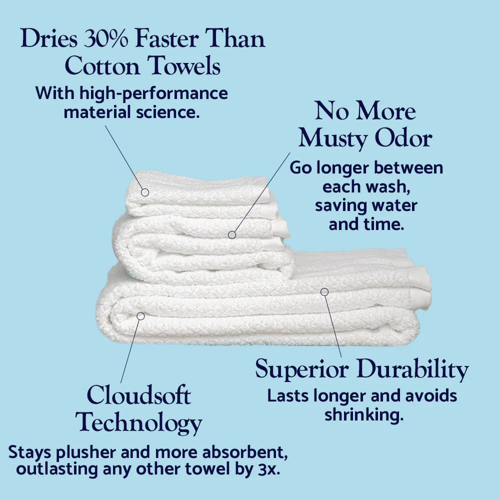 Designed with a unique combination of 100% cotton and high-performance polyamide, Cloudsoft Quickdry towels are the most innovative and luxurious towels around. Sophistication, comfort, and performance are just waiting to wrap you up!